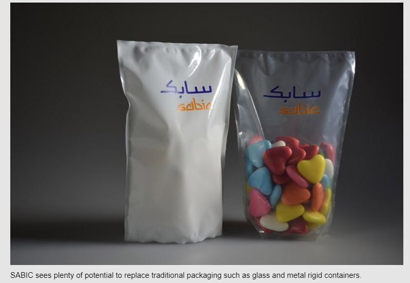 SABIC sources see plenty of potential to replace traditional packaging formats such as glass, tin and rigid plastic packaging. They agree that the biggest challenge is being able to provide similar properties such as high barrier to oxygen and convenience with these mono-material pouches.